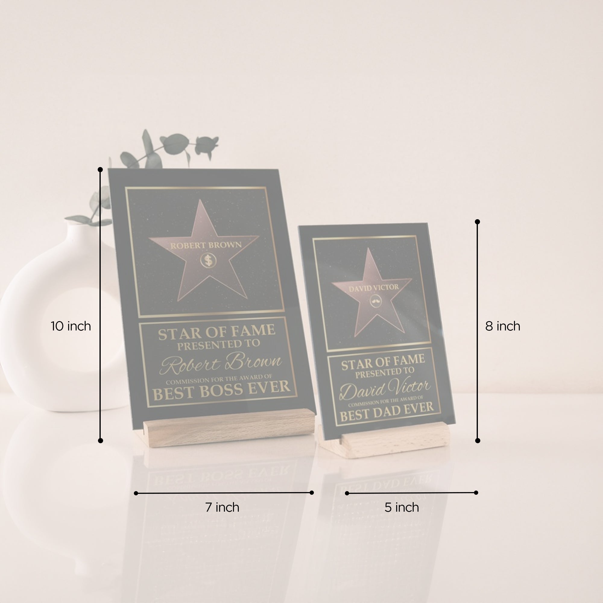 If you're looking for a distinguished and heartfelt gift, this Personalized Acrylic Star Plaque is the perfect choice. Order now and make your loved one’s day unforgettable with this custom Hollywood-style gift!