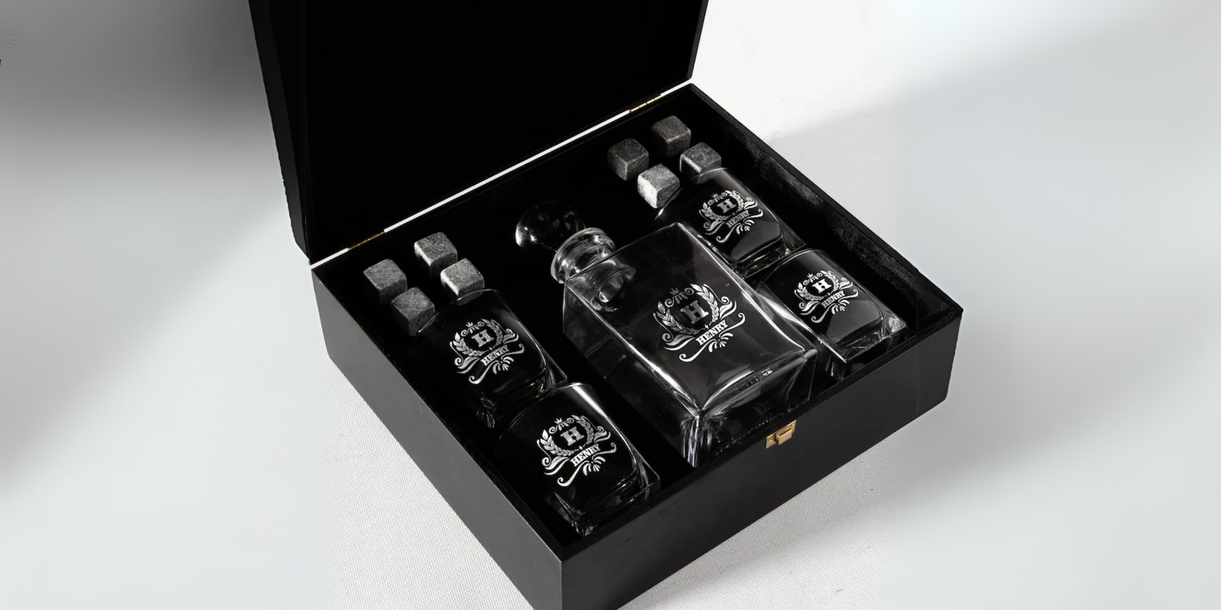 Make your gift truly one-of-a-kind by choosing from a variety of design templates for the box and glasses. You can engrave names, initials, or a special message, adding a personal touch that makes the gift even more meaningful.